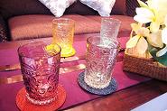 ハートとお花を組み合わせた様なエレガントな模様が入ったグラスです。