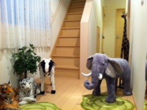 先日K様がアニマルチェアーをお買い上げ! 一見ぬいぐるみ・・しかし80Kgまで対応のチェアーなんです! お顔もかわいくなでなでしたくなる! 座るなんて!!とお思いでしょうが、案外座り心地もGOO! で!!写真を送ってくれました! お玄関で新入りの牛さんと象さんが鎮座しておりました! ムチャクチャかわいい!!